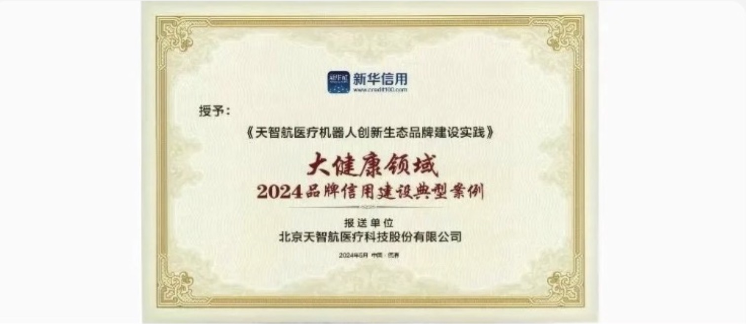 2024-05-16 2024-05-16天智航入選新華社“大健康領域品牌信用建設典型案例”天智航憑借在醫療機器人創新生態品牌建設方面的探索實踐成功入選“大健康領域品牌信用建設典型案例”