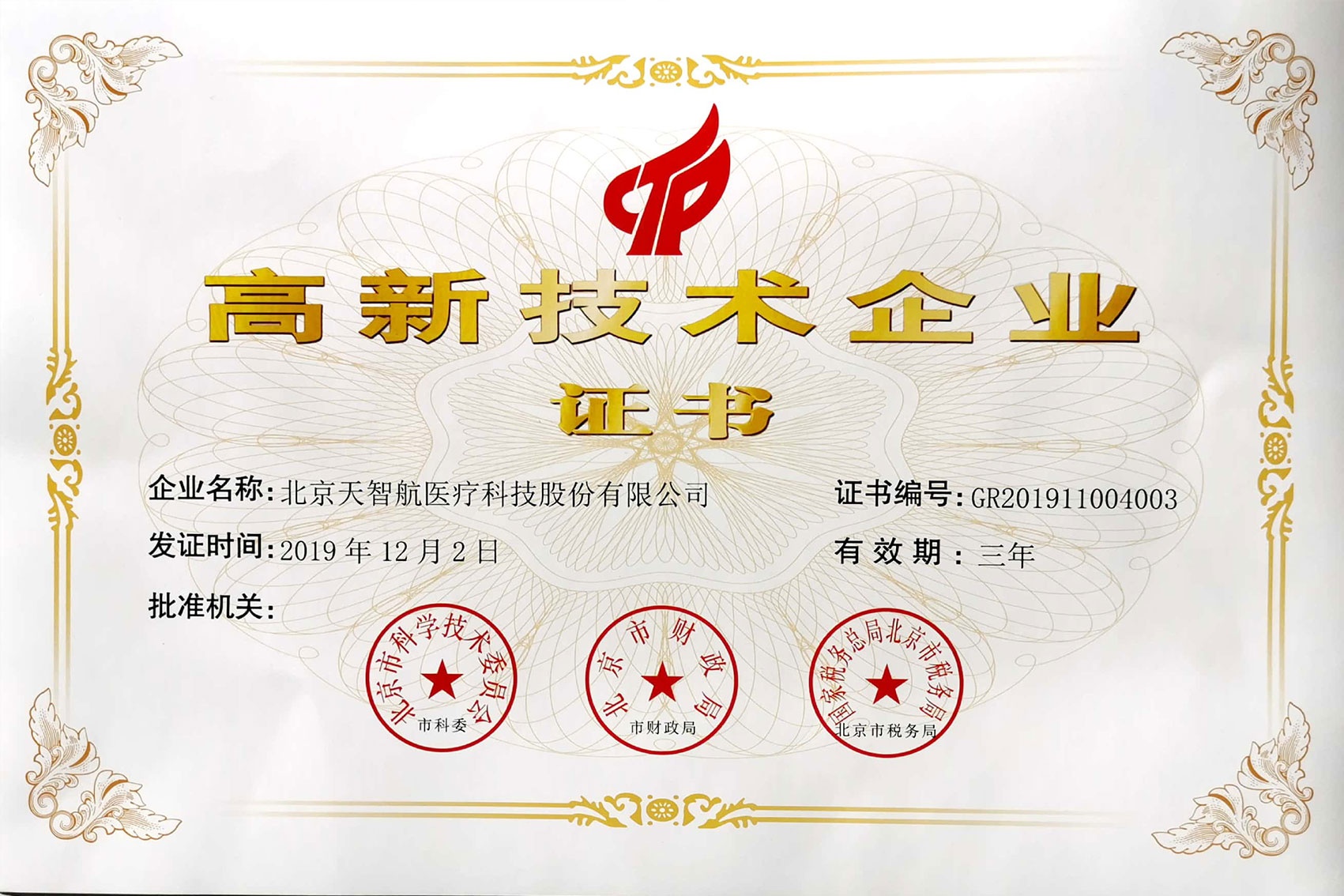 2019-北京市高新技術企業證書