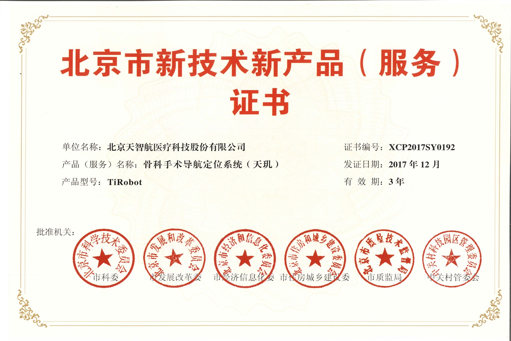 2017-北京市新技術新產品服務證書