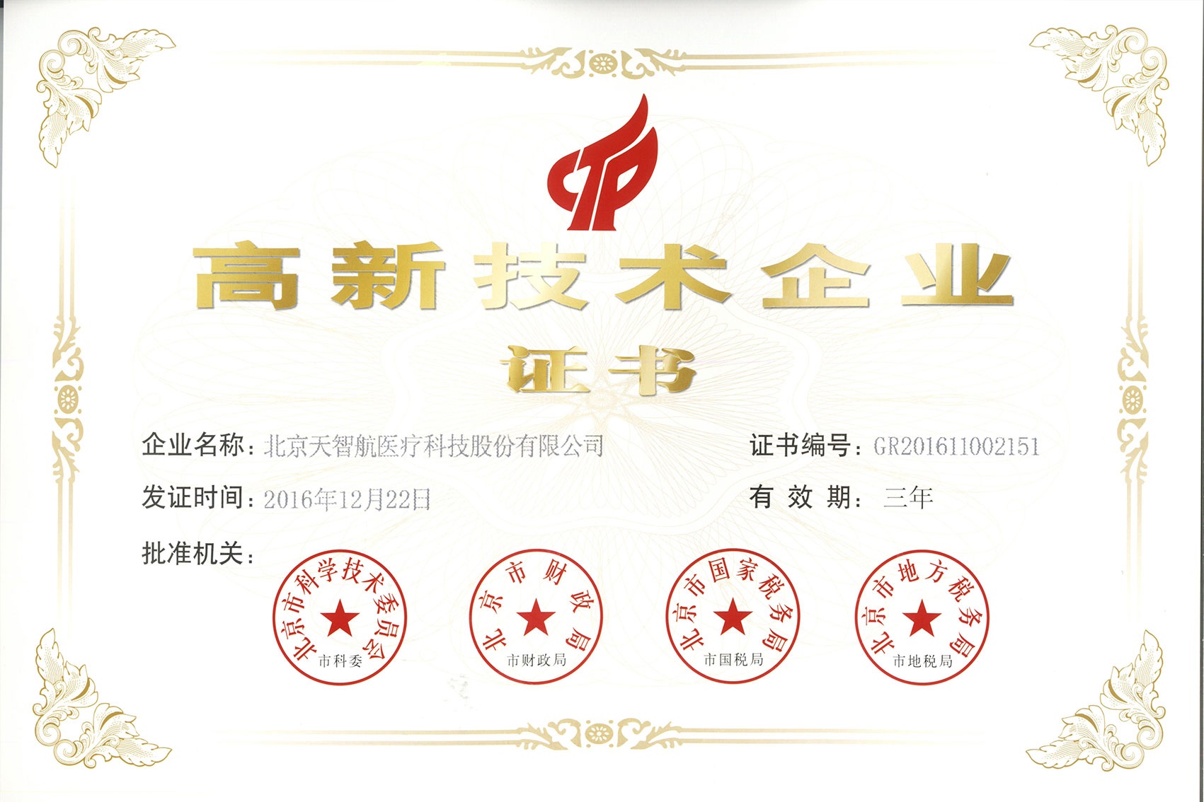 2016-北京市高新技術企業證書
