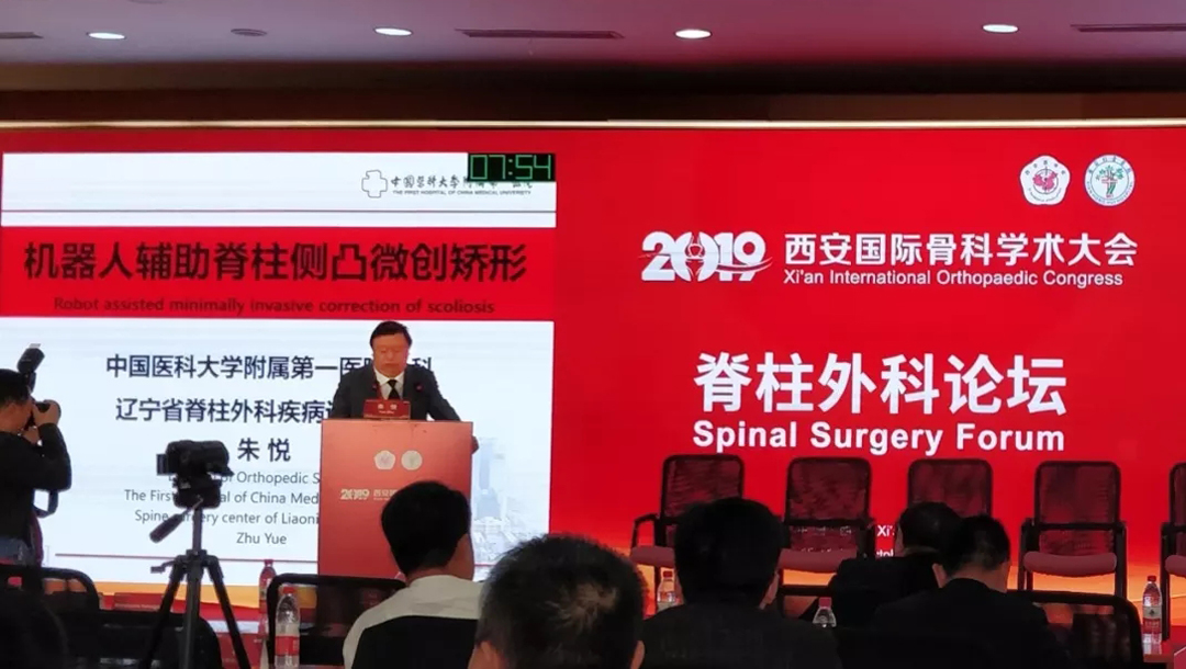 在脊柱外科論壇中,中國(guó)醫(yī)科大學(xué)附屬第一醫(yī)院朱悅教授做了題為《機(jī)器人輔助脊柱側(cè)凸微創(chuàng)矯形》的主題發(fā)言。他指出,目前骨科手術(shù)機(jī)器人已應(yīng)用到關(guān)節(jié)外科、運(yùn)動(dòng)醫(yī)學(xué)、創(chuàng)傷領(lǐng)域及脊柱外科等學(xué)科中,他以中國(guó)醫(yī)大一院完成的國(guó)內(nèi)首例天璣?骨科手術(shù)機(jī)器人聯(lián)合可彎曲錐體后凸成型系統(tǒng)治療骨質(zhì)疏松性椎體壓縮骨折的手術(shù)為例,高度肯定了天璣? 在骨科手術(shù)中的作用。天璣? 作為國(guó)際上唯一能夠開(kāi)展脊柱全節(jié)段(頸椎、胸椎、腰椎、骶椎)的骨科手術(shù)機(jī)器人系統(tǒng),在手術(shù)過(guò)程中充當(dāng)著骨科手術(shù)醫(yī)生的“第三只手”,充分發(fā)揮了智能、精準(zhǔn)、微創(chuàng)的優(yōu)勢(shì),結(jié)合可彎曲椎體后凸成型系統(tǒng),給術(shù)者的操作帶來(lái)更大的方便,提高了手術(shù)效率,也給患者帶來(lái)了更加的術(shù)后效果。